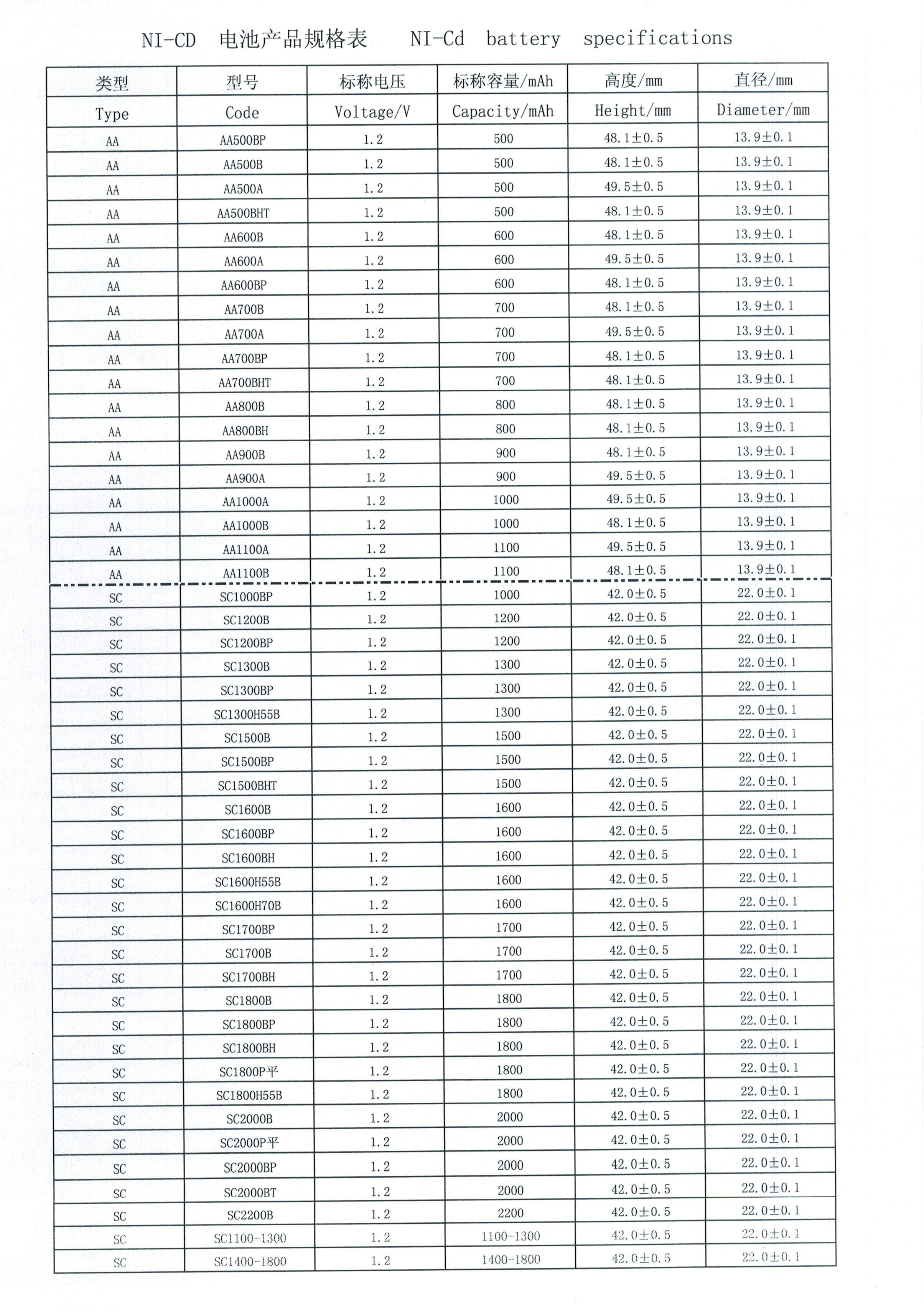 NI-CD Battery Specifications